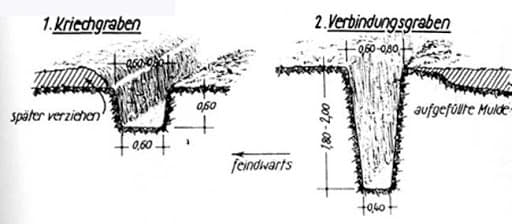 Zdecydowano się na realizację konceptu który przypominał rozwiązania znane jeszcze ze starożytnych rzymskich fortyfikacji… Saperzy niemieccy – a być może przymusowi robotnicy lub więźniowie z niedalekiego obozu Stutthof – usypali długi ziemny wał na leśnych grzęzawiskach.